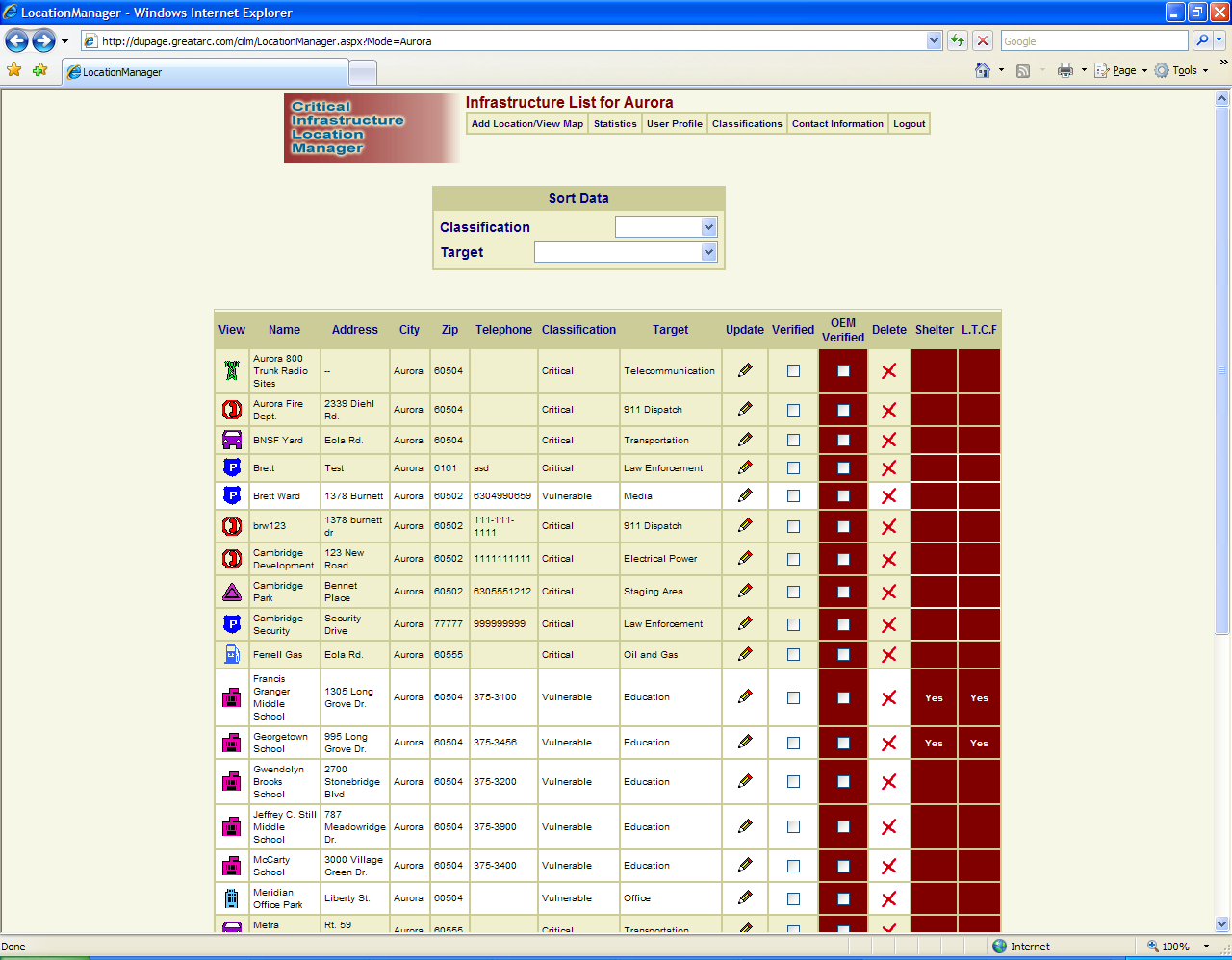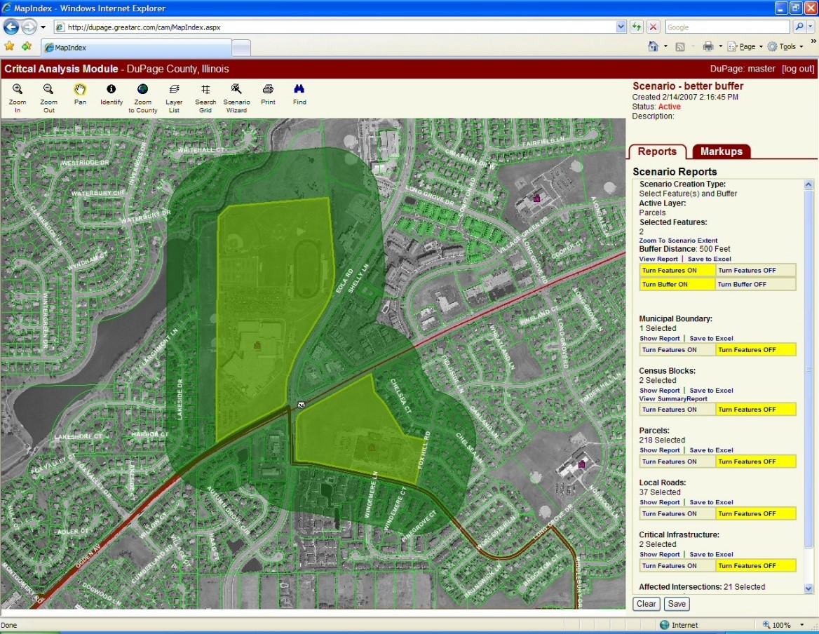 DuPage County wanted to upgrade an existing Homeland Security Application for managing critical infrastructure called Critical Infrastructure Location Management (CILM) from an ASP to an ASP.Net application. CILM would provide users from various departments within DuPage County, as well as cities and villages throughout the County, with a common location to manage infrastructure elements considered important for their own organization. Additionally, the County wanted to build an application that would provide first responders with access to GIS data and incident or event information while in the field. The Critical Analysis Module (CAM) would allow multiple users to access information about an event while in the field.