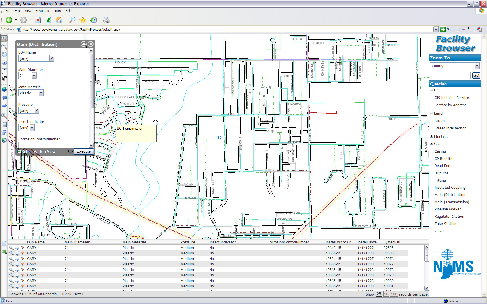 Previously, Great Arc had built and implemented an Autodesk MapGuide solution for viewing land, electric, and gas data on the Internet for NIPSCO. The site was initially driven by an Access database and was eventually migrated to SQL Server. The application was built using HTML, JavaScript, Cold Fusion, and the MapGuide API. NIPSCO was in the process of migrating the Autodesk data to an ArcFM format using ArcSDE SQL Server as the database backend. Because of the large number of users of the MapGuide application, it also would need to be migrated to an ESRI environment in order to best use the new data.